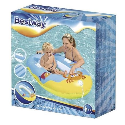 Két játékos színben elérhető. Nagyon ellenálló anyagból készült. A csónakon szilárd fogantyúk és vontató kötél található. Az felfújható alj nagyobb kényelmet biztosít.