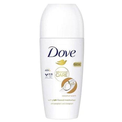 Roll-On Dezodor - Dove Advanced Care Coconut & Jasmine Flower Scent, 50 ml: Izzadásgátló roll-on, amely akár 48 órás védelmet nyújt az izzadás ellen. 1/4 hidratáló krémet tartalmaz a puha és sima hónaljért. Ez a hidratáló izzadásgátló segít csökkenteni a szőrtelenítés okozta hónaljirritációt. A Dove Coconut & Jasmine Flower Scent izzadásgátló meleg, virágos illatú, krémes kókusz- és jázminvirág jegyekkel. A női roll-on dezodor alkoholmentes formulával készült.