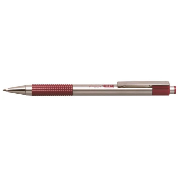 Az F-301 golyóstoll rozsdamentes acél tollteste a stílus és a tartósság záloga. Bordázott markolata garancia a kényelmes és stabil írásra.  Tintaszín: kék. Golyóátmérő: 0,7 mm, írásvastagság 0,24 mm.