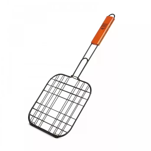 A fa nyél kényelmesebb fogást biztosíthat, míg a fém rácsos rész jól használható húsok, halak és zöldségek