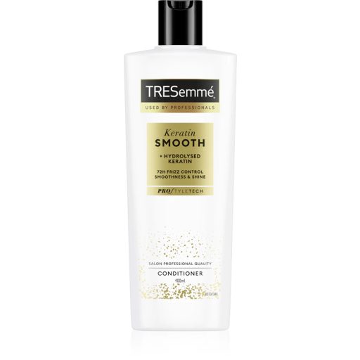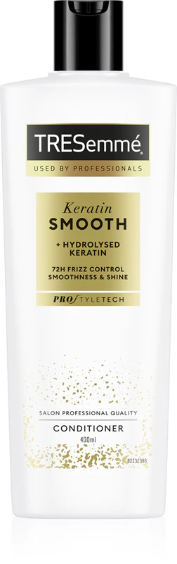 A hajmosás során a sampon megnyitja a haj felszíni szerkezetét – a kutikulát. Ezért fontos, hogy hajmosás után gondoskodjon a haja ápolásáról, hogy a kutikula újra bezáródjon. A kiváló TRESemmé Keratin Smooth kondicionáló pontosan erről gondoskodik. Amellett, hogy lezárja a hajszálakat, biztosítja a haj táplálását, hidratálását és lágyítását, ami nélkül a szép, fényes és egészséges haj nem létezik. Védi a hajszálakat a mechanikai sérülésektől és a kiszáradástól, kisimítja és puhítja hajat, így könnyebben fésülhetővé és egyszerűen formázhatóvá válik.