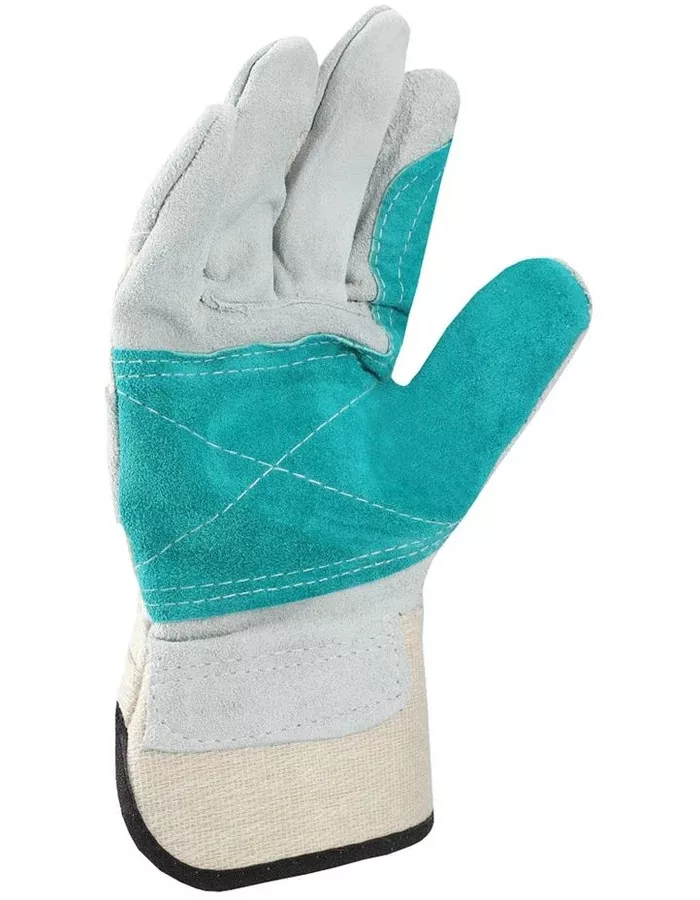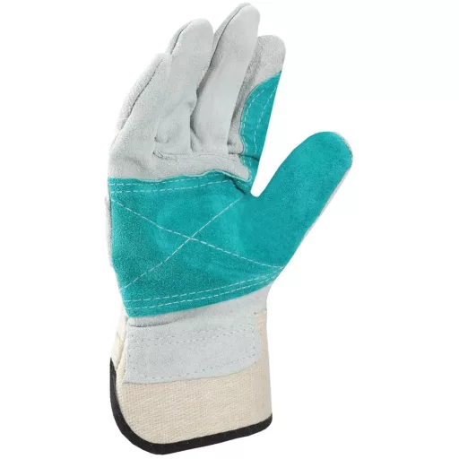 A Kesztyű erősített bőr TÜRKIZ 10-es méretben masszív, strapabíró kialakítású, kiválóan alkalmas nehéz, fizikai munkákhoz. Erősített marhabőr tenyérrésszel és ujjvégekkel készül, így fokozott védelmet nyújt a mechanikai sérülések ellen. A kézfejen található textil rész biztosítja a megfelelő szellőzést, a belső bélés pedig kényelmessé teszi a használatot hosszabb távon is. Ideális választás építkezésekhez, rakodáshoz, kerti munkákhoz és egyéb ház körüli tevékenységekhez.