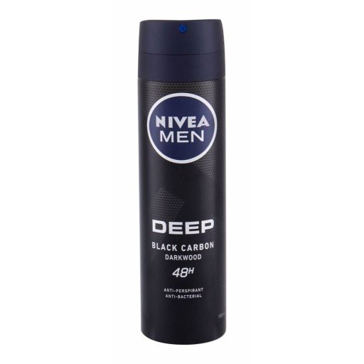A NIVEA Men Deep izzadásgátló spray tartós száraz és tiszta bőrérzetet biztosít az aktív szénnel rendelkező antibakteriális formulájának köszönhetően. Hatékony 48 órás védelem a bőr számára. BŐRGYÓGYÁSZATI ALATT TESZTELT TERMÉK