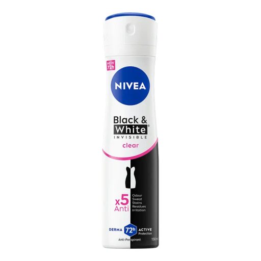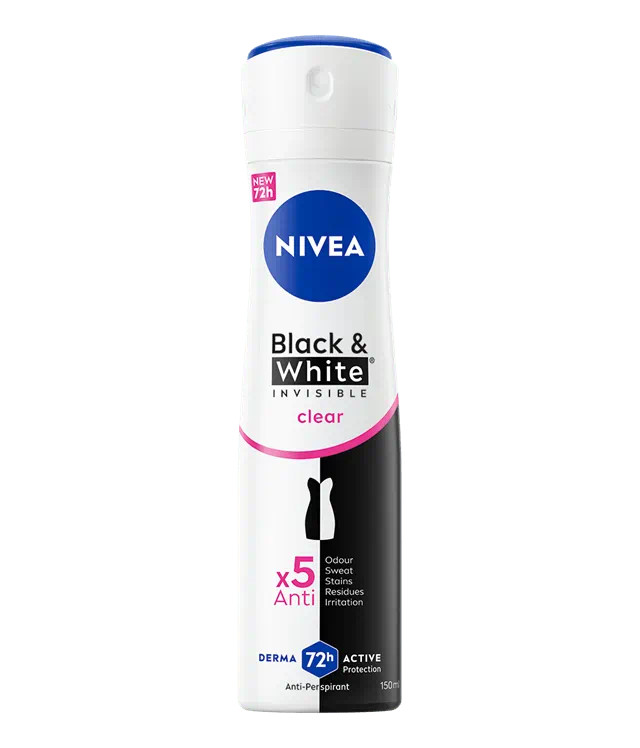 Az izzadásgátló spray dezodor csökkenti a sárga foltok kialakulását a fehér, és a fehér foltok kialakulását a fekete ruhákon: Black & White Invisible Clear Izzadásgátló Spray.