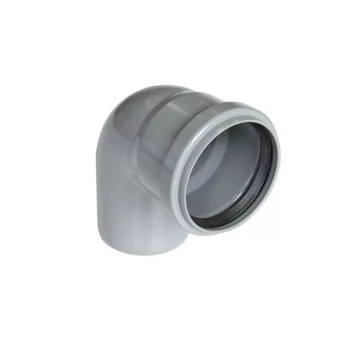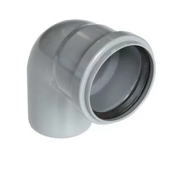 A PVC 110/90° szürke kivitelű idom, amely 110 mm / 90° kialakítással segíti a csővezeték irányváltását.