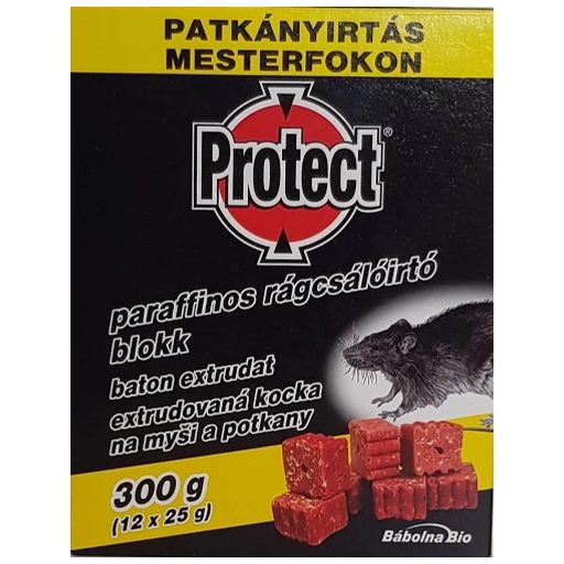Felhasználásra kész 25g-os rágcsálóirtó blokk. A blokk keserű anyagot (denatónium-benzoát) tartalmaz, amely segít megelőzni a készítmény ember általi véletlen fogyasztását.