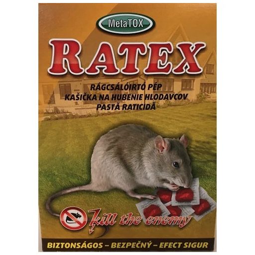 A RATEX rágcsálóirtó pépünk a bromadiolon véralvadásgátló hatóanyagának segítségével hatékonyan lehetővé teszi az óvatos kártevők (egerek, patkányok) zárt térben és szabadban való gyors és biztos kiirtását. A bromadiolon hatása miatt a rágcsálók nem gyanakodnak, így a kártevő rágcsálók könnyen és gyorsan elpusztíthatóak.