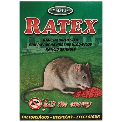 A RATEX rágcsálóirtószer granulátum patkányok, egerek irtására felhasználható, második generációs, véralvadásgátló hatóanyagot tartalmazó irtószer, amely már egyszeri fogyasztás után is elpusztítja a rágcsálókat. Az irtószer BITREX-et tartalmaz, mely egy rendkívül keserű anyag. Ez a komponens segít megakadályozni az ember általi, véletlenszerű fogyasztást. Így emberi környezetben is biztonsággal alkalmazható.