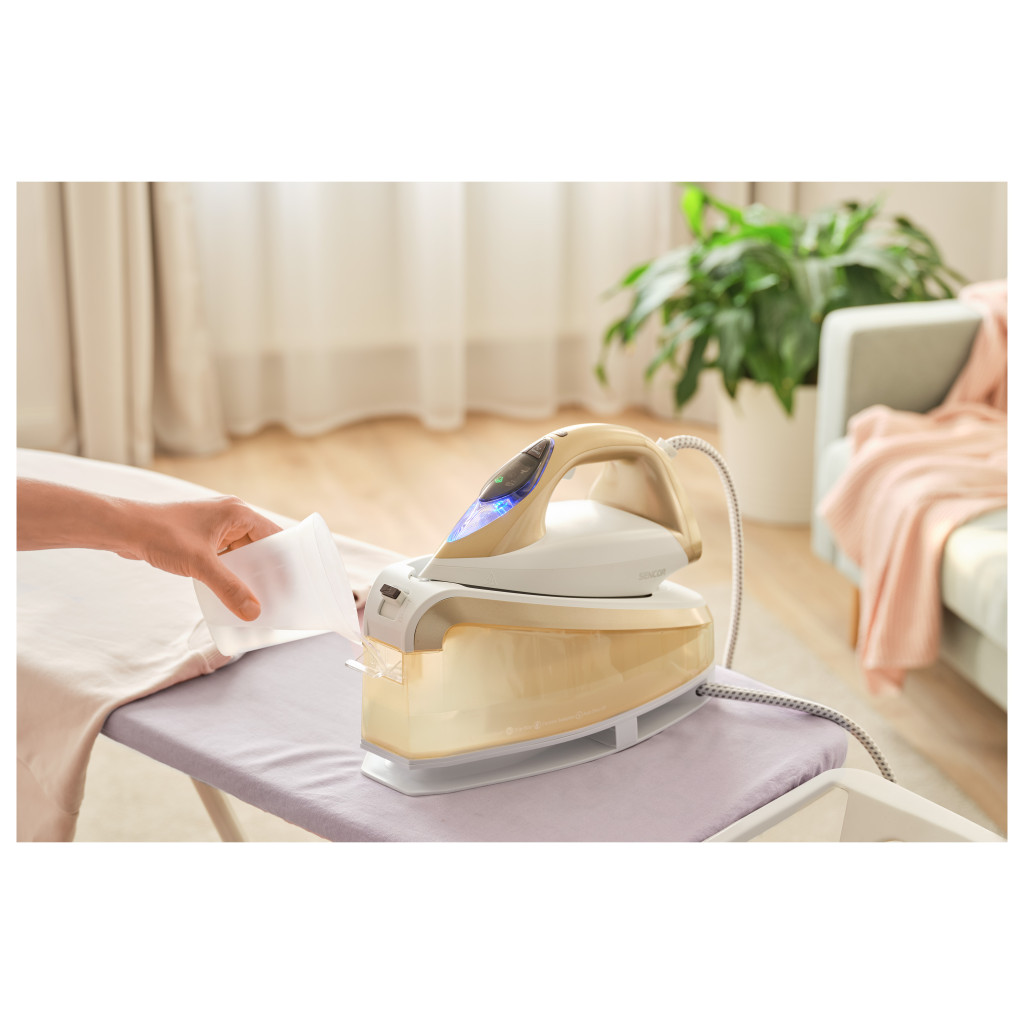 Ez a gőzállomás prémium kategóriás vasalási megoldást kínál. A 2400 W teljesítmény és a nagy gőzteljesítmény révén lerövidíti a vasalási időt, a kerámia vasalófelület pedig sima siklást biztosít. Függőleges gőzölési funkcióval is rendelkezik, így függönyök vagy lógatott ruhadarabok vasalása is egyszerű. Anti-Calc szűrő védi a vízkőlerakódástól.