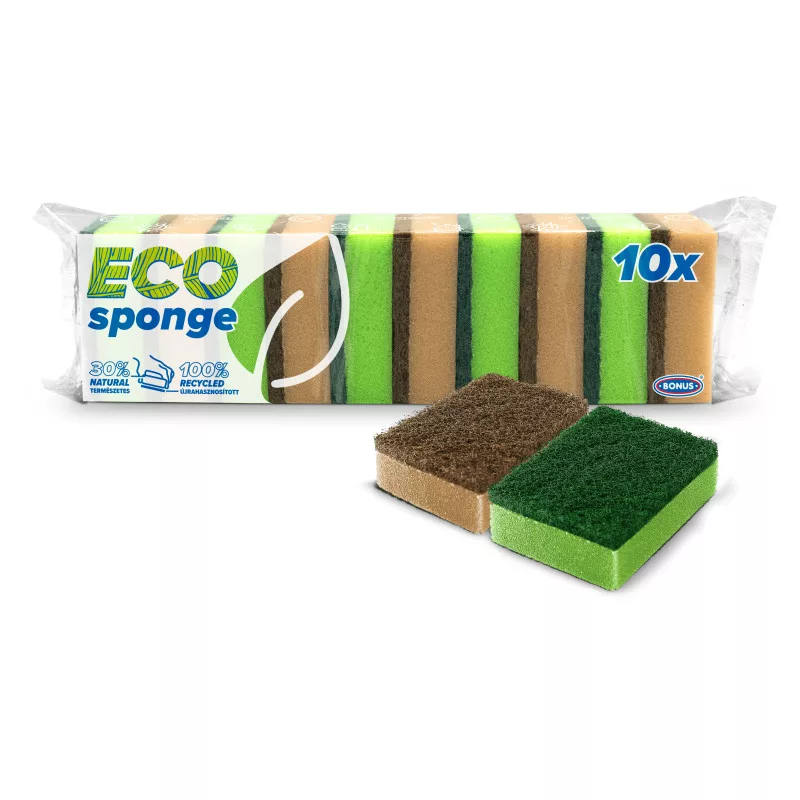 A dörzsfelület hatékonyan bontja a zsírt és az odaszáradt ételmaradékot, a puha haboldal pedig kíméletesen tisztít.